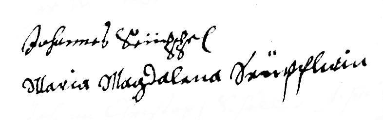 - Marie Madeleine, mariée avec le boulanger et aubergiste Jean Michel Vellner de Pforzheim,