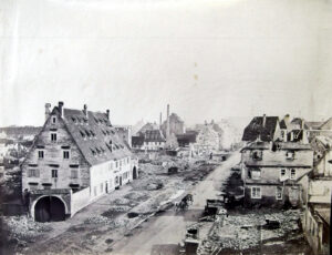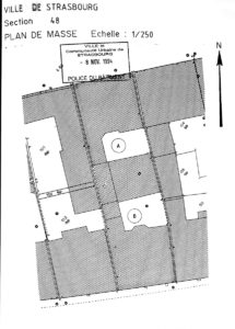 » Explication est faite que sur ce terrain se trouvaient une maison d’habitation et autres constructions ayant porté le N° 72, lesquelles ont été incendiées lors du bombardement de la Ville de Strasbourg par les allemands »