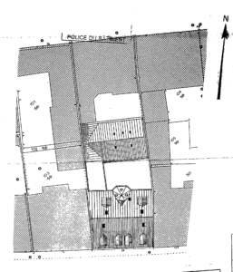 Terrain acquis de la Ville en 1871 – Dessin du bâtiment arrière (1957, agrandissement de la Cartoucherie française dossier 927 W 50)