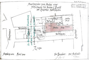 Cours K et J – Façade en 1901, Plan du nouveau bâtiment (1902, dossier 798 W 153)