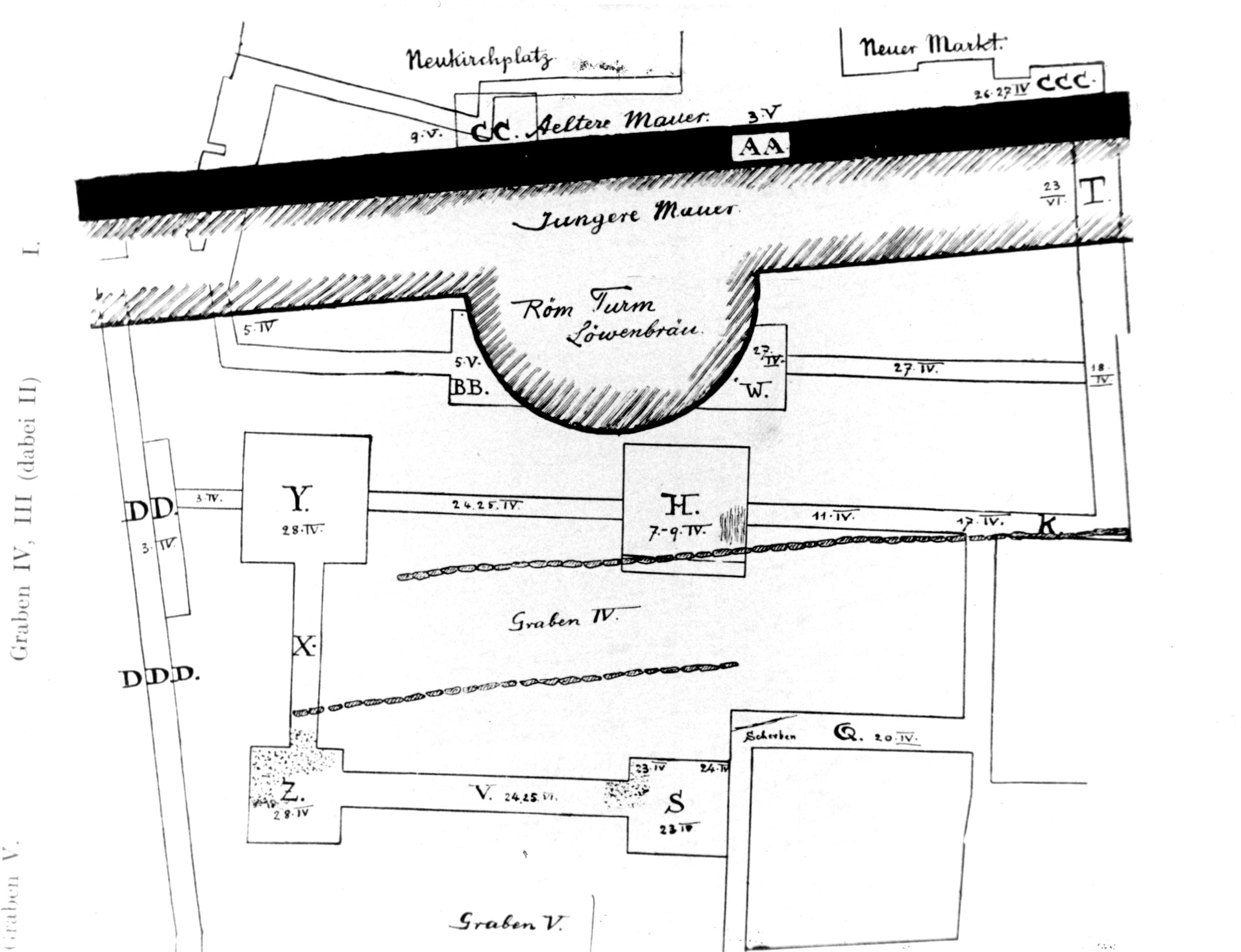 Tour romaine entre la place du Temple-Neuf et celle du Marché-Neuf, plan (ICO 482 B 092 20)