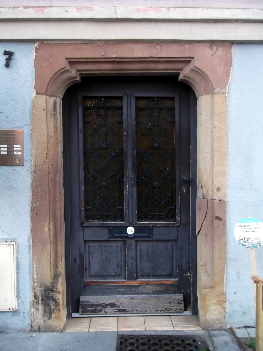 Désignation. Une maison à rez de chaussée et deux étages avec cour et autres appartenances et dépendances, située à Strasbourg rue du Finckwiller n° 1, formant d’un côté le coin de cette rue et de la rue des ponts couverts, tenant de l’autre côté au Sr Baldner par derrière à la veuve Stauffert et à un bras de l’Ill.