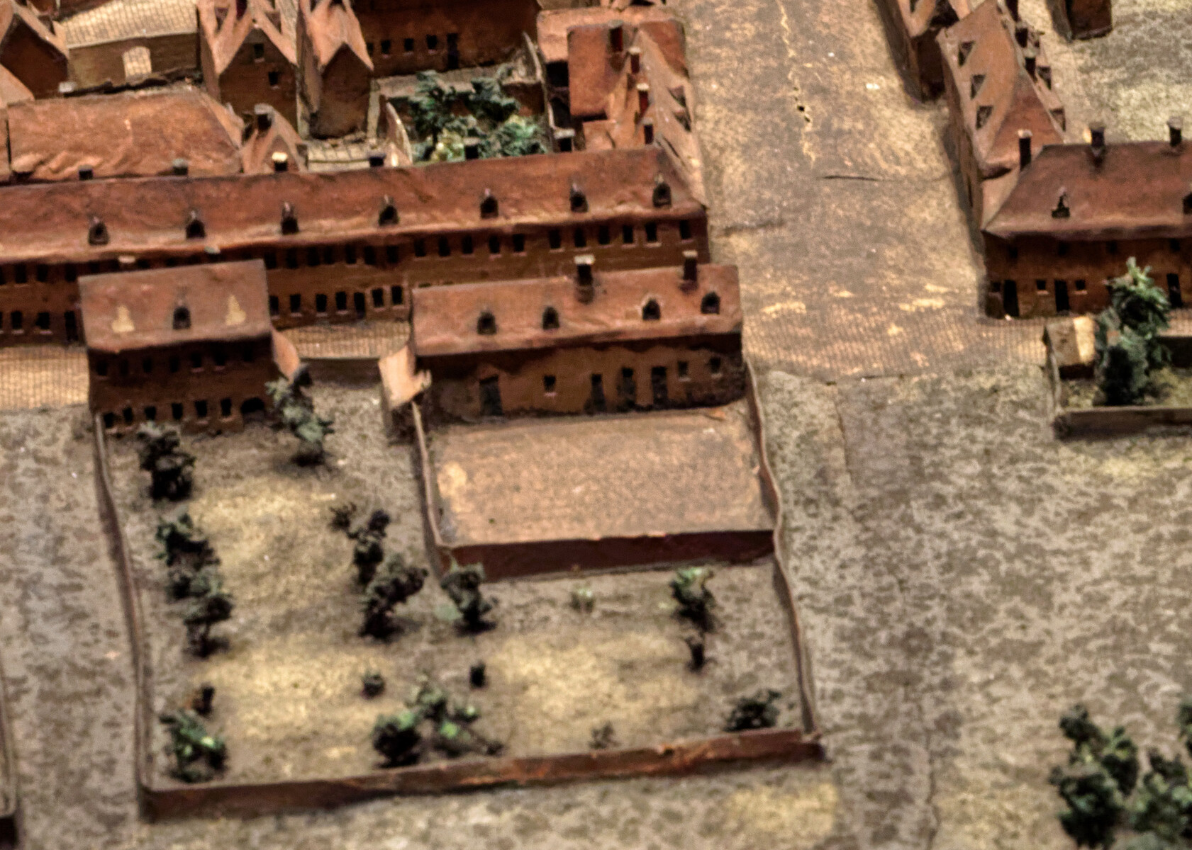 Rue des Maisons rouges, place Saint-Nicolas et casernes à droite, Plan-relief de 1727 (Musée historique)