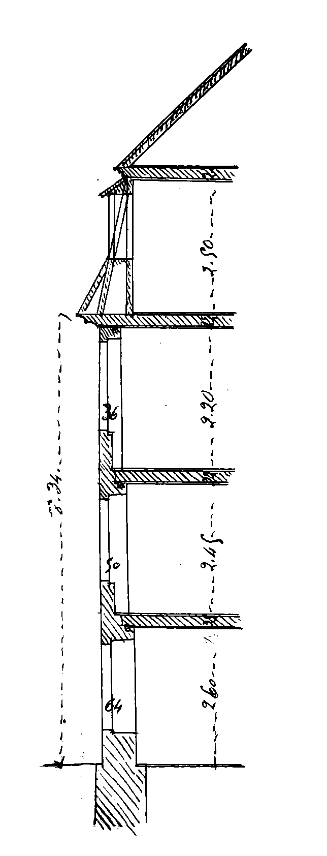 Cour A – Coupe lors de la surélévation (1871, dossier 739 W 40)