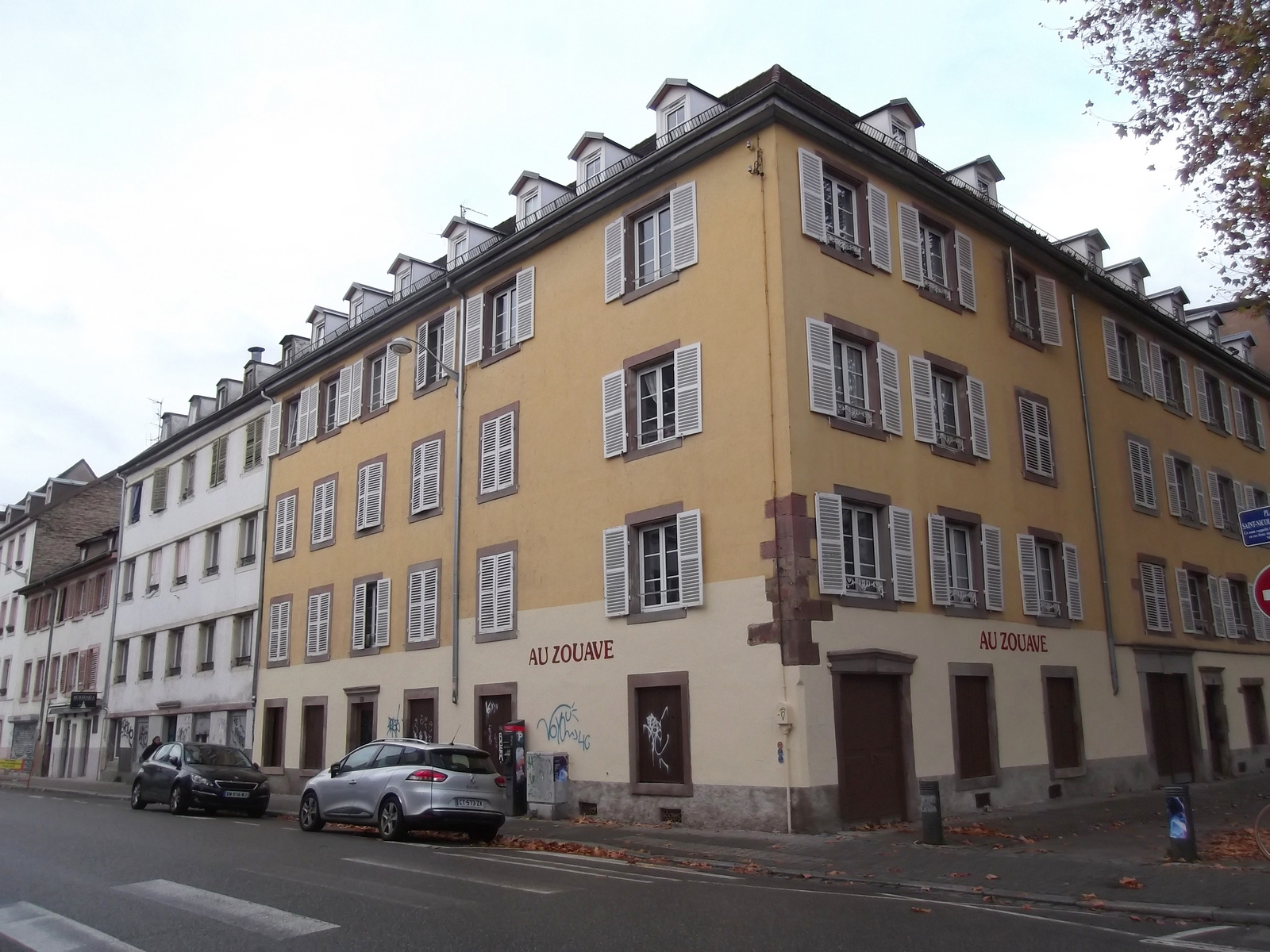 Le cabaret à la Bombe est exploité au XIX° siècle par son propriétaire Chrétien Haller (1832-1860). Louis Vasbender charge en 1871 l’entrepreneur J. Klein de surélever les façades d’un étage et de remplacer les encadrements en maçonnerie par de nouveaux en pierre de taille puis en 1874 de convertir une croisée en porte d’entrée place Saint-Nicolas. Aloïse Stebel obtient en 1908 une licence de restaurant. Le débit de boissons porte l’enseigne Au Chevalier (zum Ritter, 1942) puis Au Zouave (1947).