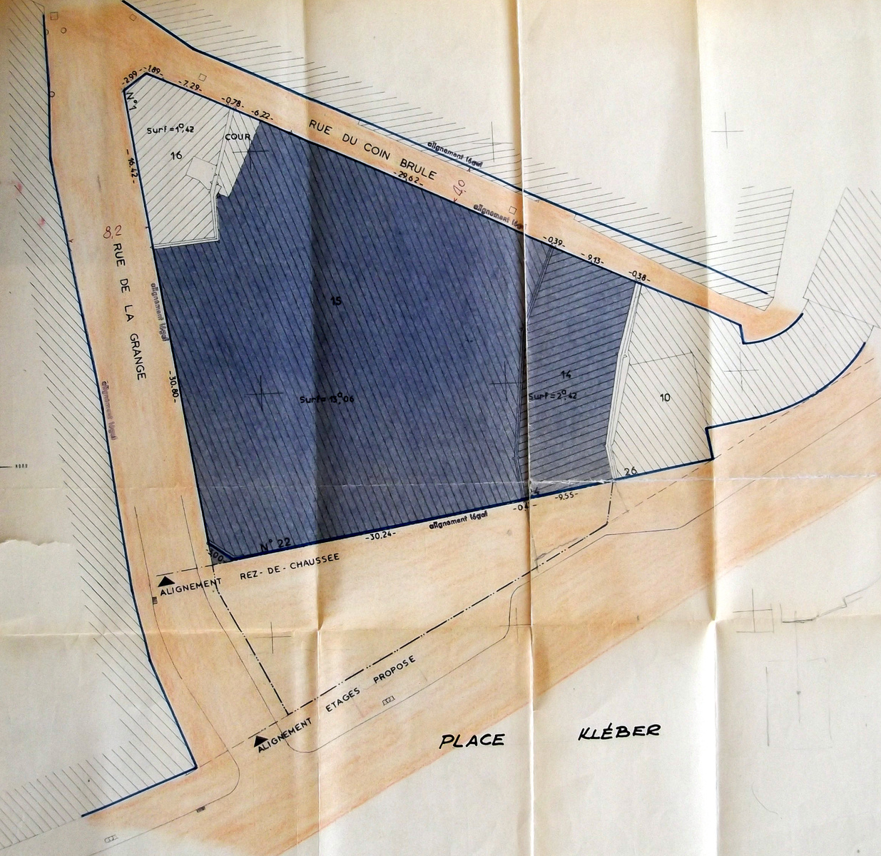 Place Kleber n° 22 – IV 443 (Blondel), N 732, ensuite section 61 parcelle 15 (cadastre)