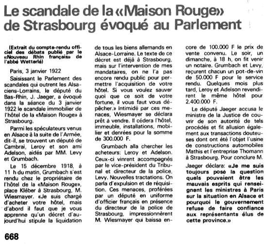 Guillaume Wiesmayer vend le 15 décembre 1918 l’hôtel en son nom et en celui de la société en nom collectif Palace hôtel Maison Rouge Wiesmayer à Abraham André Adelson, négociant de Paris, et à Alfred Le Roy, député du Nord résidant à Paris, pour 1 139 500 marks