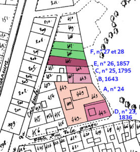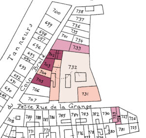 en 1836 de la maison 11, Petite rue de la Grange (rose clair, sans numéro)