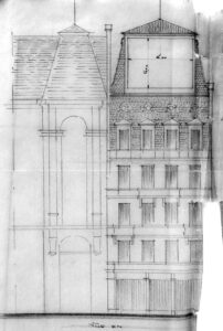 Terrain acquis en 1885 – Nouvelle façade, 1886 (Police du Bâtiment, dossier 233 MW 1276)