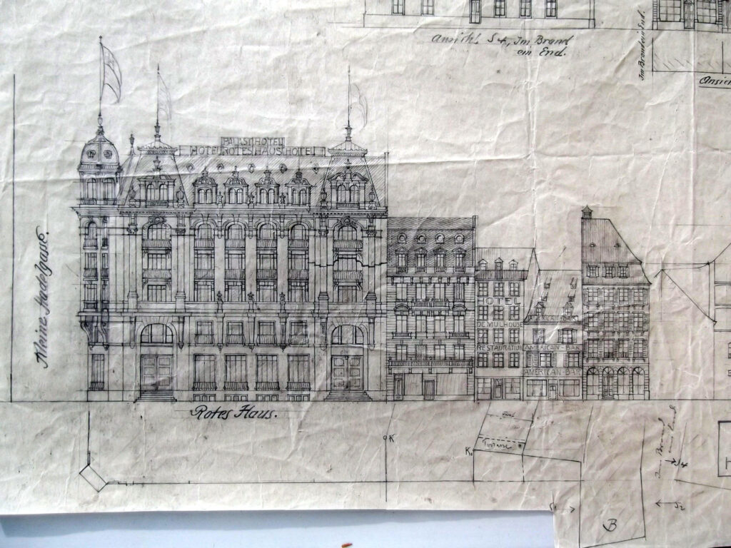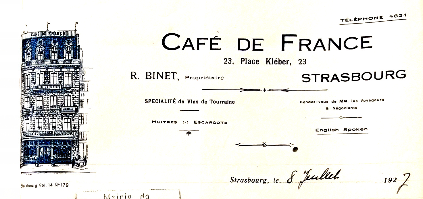 Charles Halbmeier exploite le Café Mignon après que les architectes Brion et Haug ont aménagé le rez-de-chaussée en 1903. Le Café Mignon passe ensuite à Joseph Uhli, il est remplacé par le Café viennois (Wiener-Kaffee, 1910), le Café de la Hanse (Hansa Café, 1913) puis le Café de France (1923). Aloïse Hilber est autorisé en 1927 à construire sur la toiture un écran pour y projeter des publicités lumineuses.