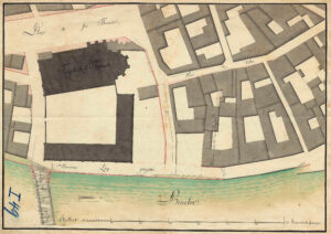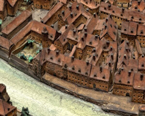 Plan-relief de 1727 (Musée historique). La maison en L se trouve à l’extrémité gauche du quai.