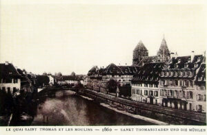 Carte postale Le Strasbourg disparu n° 172 (1860). La maison est la troisième à partir de la droite