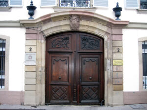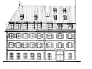 Bâtiment avant reconstruit en 1572 (Louis de Müllenheim) puis en 1787 (maître d’ouvrage François Walter, maître maçon Jean Régnard Pfauth, au moins pour la partie gauche)