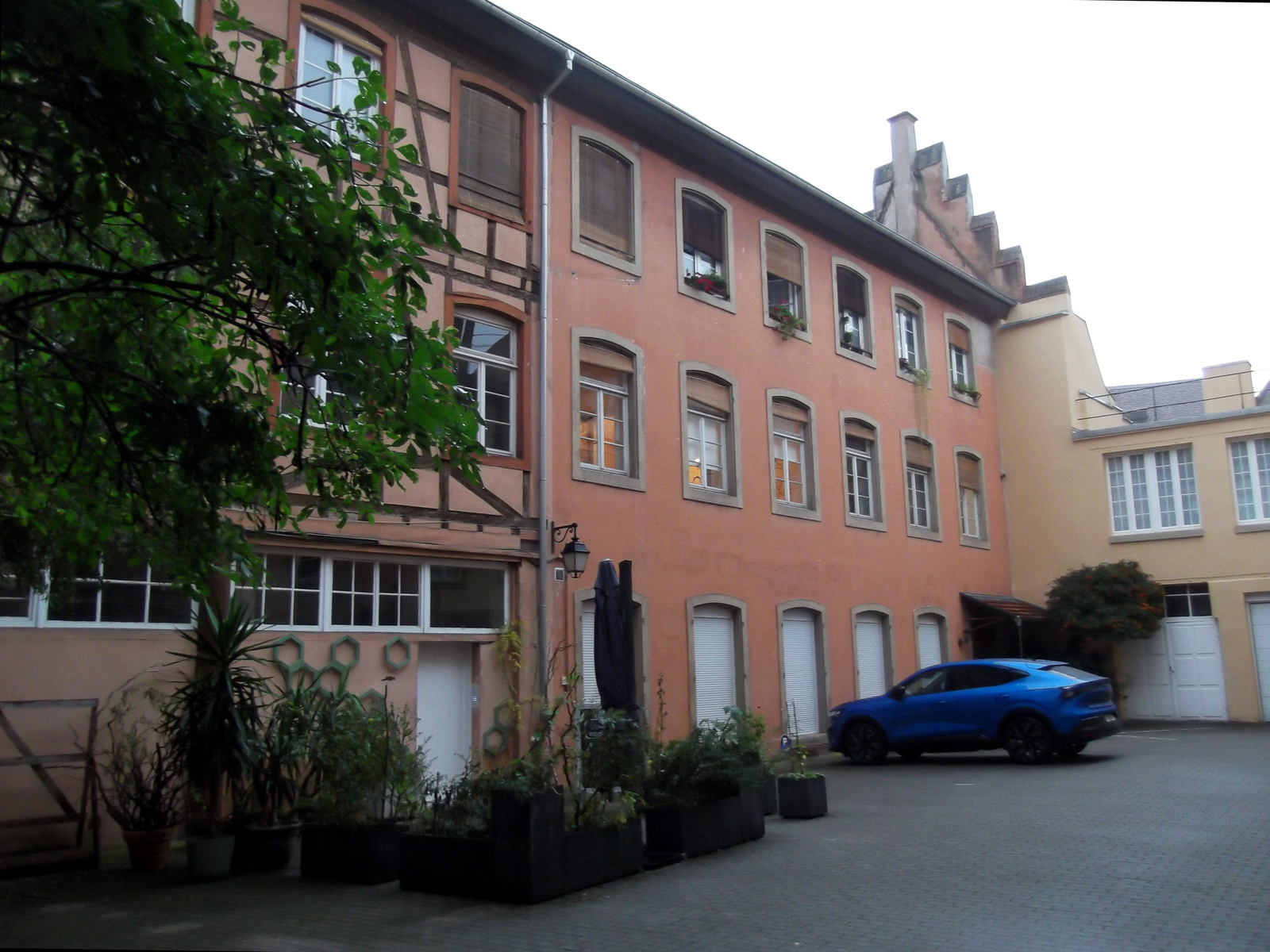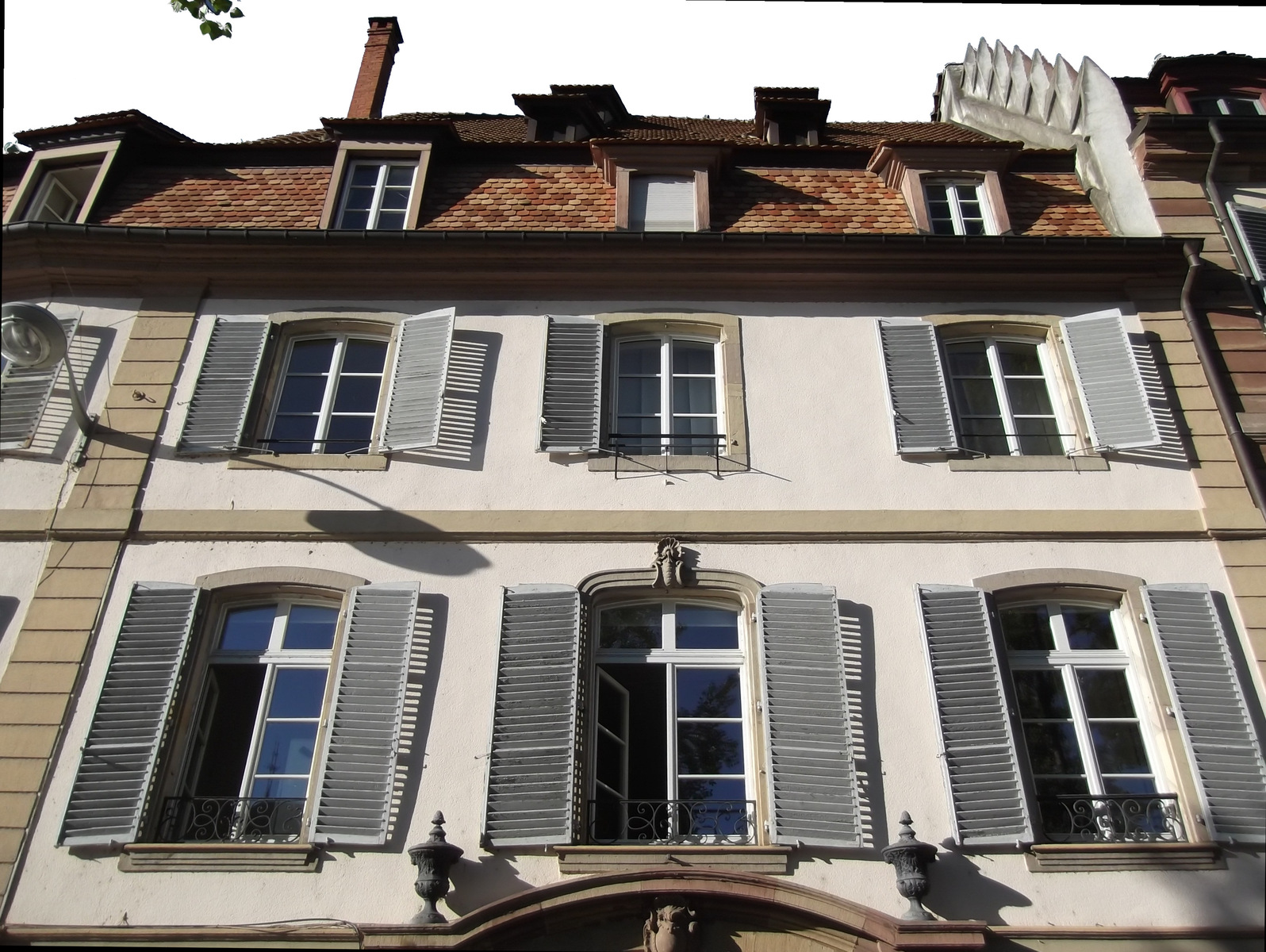 Etages, le linteau de la fenêtre central est mouluré – Cour, côtés sud, sud-ouest, nord-ouest, nord-est (septembre 2025)