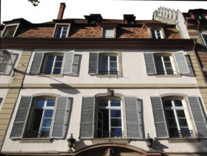 Louis de Müllenheim est autorisé en 1571 à reconstruire sa maison en partie sur un terrain communal, en démolissant la petite maison qui a au-dessus de la rivière un encorbellement remplacé par un oriel ; les travaux ont lieu en 1572. Philippe André de Müllenheim loue en 1659 un nouveau bâtiment et vend en 1685 sa propriété au marchand réformé Jacques Hoser qui exploite une fabrique avec son associé Jean Nicolas Herff. Un lavoir à l’extrémité de la propriété voisine qui appartient au chapitre Saint-Thomas sert à laver les fils et les tapis. La maison a une issue dans la rue de l’Ail (actuel n° 6) en passant au-dessous de la propriété du voisin à l’arrière. Jacques Hoser aménage en 1688 un jardin sur un terrain communal sur la suggestion du gouverneur de Chamilly qui en a un semblable en face. Il passe un accord avec le chapitre Saint-Thomas, son voisin à l’ouest, qui laisse subsister à titre précaire les fenêtres et les cheminées ; l’accord est ratifié par les nouveaux propriétaires lors des ventes ultérieures en 1745 puis en 1787. La maison appartient ensuite au capitaine de batellerie Gaspard Meyer puis à sa fille, femme de Jean Jacques Sauer, entrepreneur des mines et directeur d’une fabrique de galons à Sainte-Marie-aux-Mines. Comme Jean Jacques Sauer a nettement sous-estimé sa fortune en réglant ses impôts, le bureau de la Taille saisit les loyers.