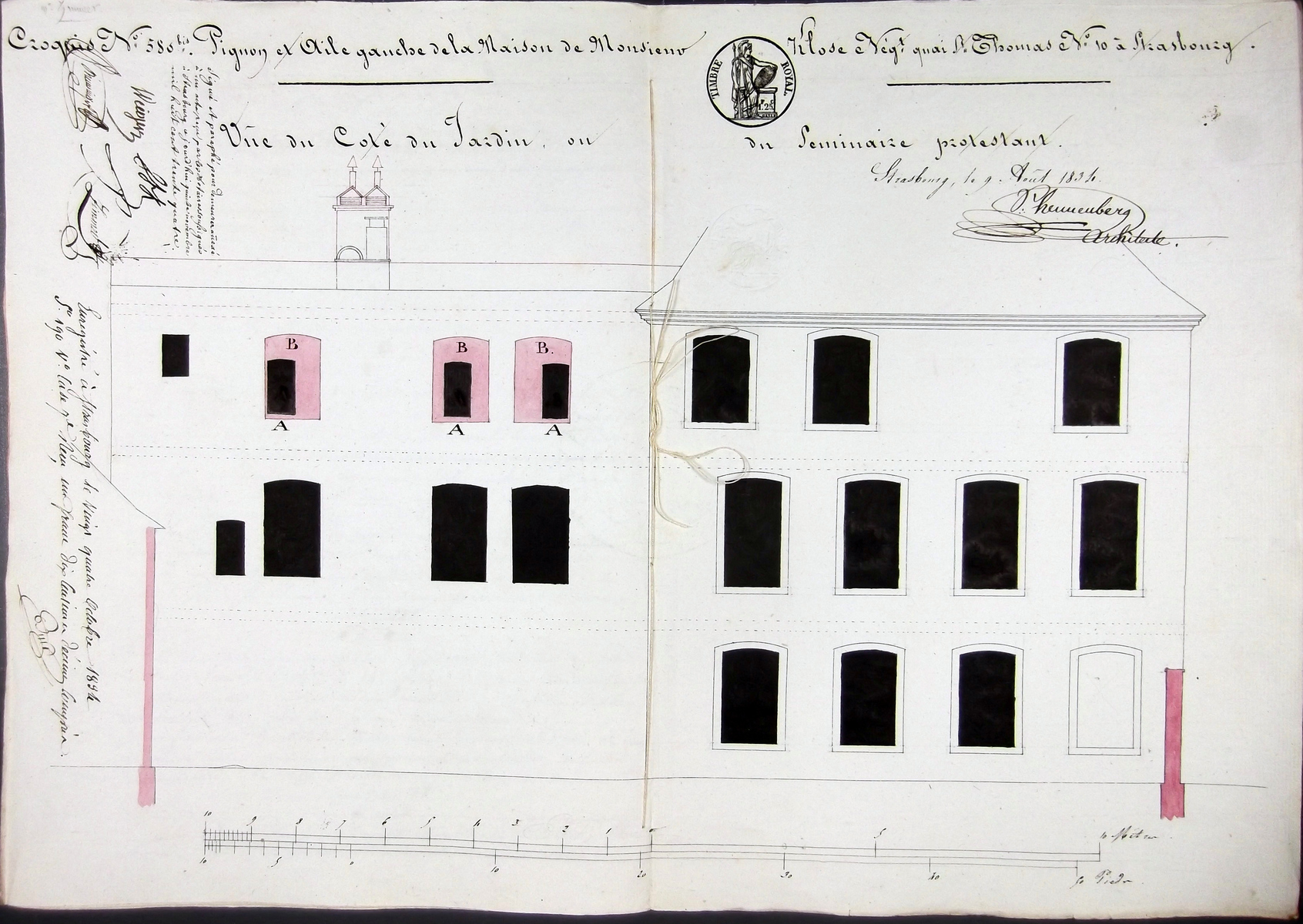 1834, ouvertures que Sigismond Frédéric Klose est autorisé à ouvrir vers la propriété de la fondation Saint-Thomas (acte Zimmer n° 1874, ADBR cote 7 E 57.10-89)