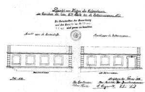 Plan et élévation du rez-de-chaussée (1912) – Nouvelle porte (1927) dossier de la Police du Bâtiment