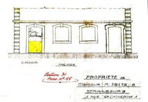 La veuve de Thiébaut Ulrich acquiert en 1878 une parcelle détachée de la voie publique quand le canal est supprimé. La veuve du cheminot Albert Heitz achète la maison en 1912 et fait transformer le rez-de-chaussée après avoir accepté que le trottoir soit rehaussé de soixante-dix centimètres à ses frais ; le mur de soutènement garni d’une rambarde est supprimé et le trottoir mis au niveau des maisons voisines. Son fils Albert Heitz fait convertir en porte la fenêtre à droite de l’angle en 1927 et convertir en magasin le logement du rez-de-chaussée.