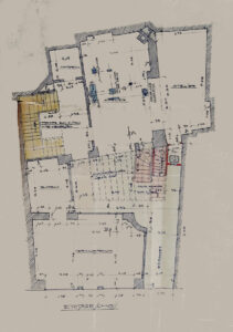 - 1890 (acte de vente) La propriété consiste en un bâtiment avant comprenant un local commercial, deux étages, des mansardes et un grenier, un bâtiment arrière à rez-de-chaussée où se trouvent deux magasins et un atelier, trois étages et greniers et un bâtiment latéral